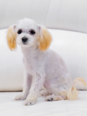Размер мини, уже не выростет, видно какого размера будет собака, окрас кремовый, вес во взрослом возрасте до 3,5 кг